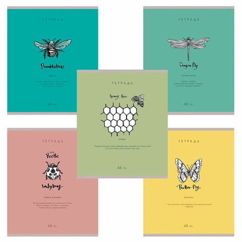 Тетрадь А5 48 л. ПЗБМ, скоба, клетка, матовая ламинация, брайль, "Насекомые шутят" (микс в спайке), 23249