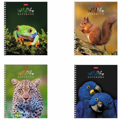 Тетрадь А5, 80 л., HATBER гребень, клетка, обложка картон, "ЗОО_мир" (4 вида в спайке), 80Т5В1гр