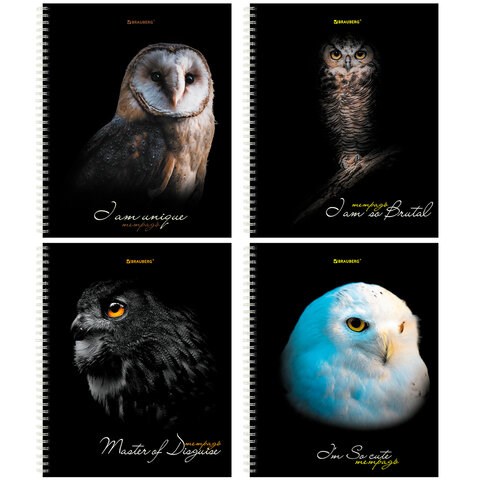Тетрадь А5 96 л. BRAUBERG, гребень, клетка, твёрдая обложка, "Совы" (микс в спайке), 404443