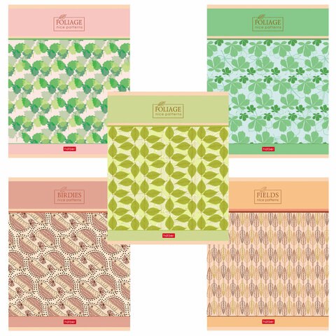 Тетрадь А5, 96 л., HATBER скоба, клетка, обложка картон, тиснение, "Паттерн" (5 видов), 96Т5тВ1