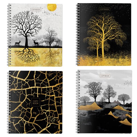 Тетрадь А5 96 л., ПЗБМ гребень, клетка, матовая ламинация, фольга, брайль, "Золотая осень" (микс в спайке), 23331
