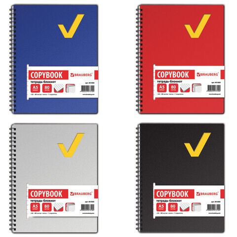 Тетрадь-блокнот 80 л., А5, 160х207 мм, BRAUBERG, клетка, гребень, обложка пластиковая, 1 разделитель, "Tag", 401800