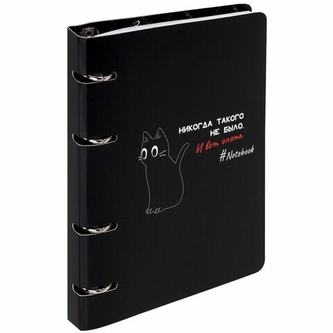 Тетрадь на кольцах А5 160х212 мм, 120 листов, картон, матовая ламинация, клетка, BRAUBERG, "Просто Кот", 404723
