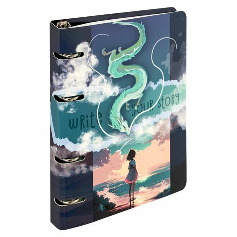 Тетрадь на кольцах А5 160х212 мм, 120 листов, картон, выборочный лак, клетка, BRAUBERG, "Anime", 404733
