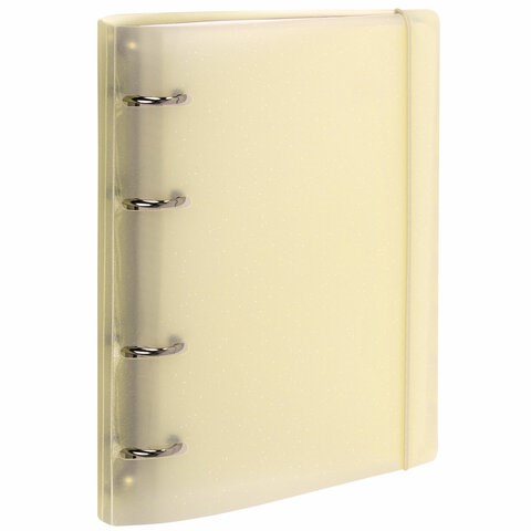 Тетрадь на кольцах с пластиковой обложкой с блестками станет незаменимым помощником в учебе и работе. Импортный кольцевой механизм позволяет легко сменить внутренний блок.