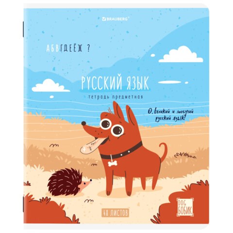 Тетрадь предметная DOG БОБИК 48 л., TWIN-лак, РУССКИЙ ЯЗЫК, линия, подсказ, BRAUBERG, 404791
