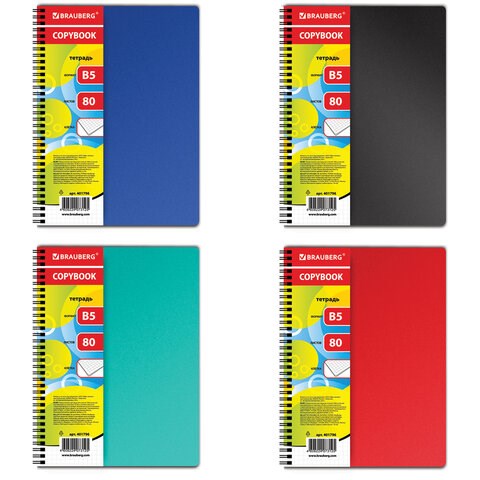 Тетрадь В5 (175х248 мм), 80 л., BRAUBERG, гребень, клетка, обложка пластик, "ОФИС", 401796