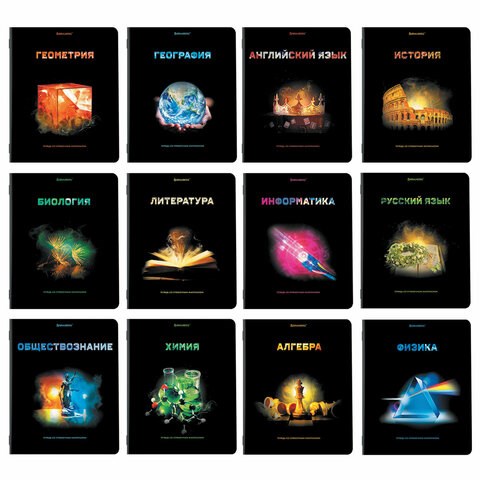 Тетради предметные, КОМПЛЕКТ 12 ПРЕДМЕТОВ, 48 л., глянцевый УФ-лак, BRAUBERG, "SHADE", 404324