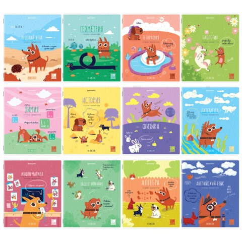 Тетради предметные, КОМПЛЕКТ 12 ПРЕДМЕТОВ, 48 л., TWIN-лак, BRAUBERG, "DOG БОБИК", 404840