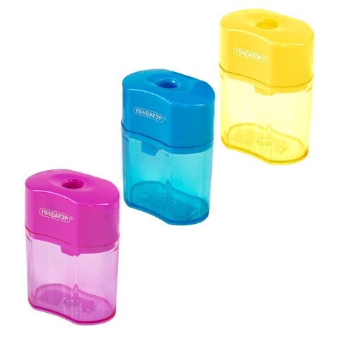 Точилка ПИФАГОР "Ergo", с контейнером, пластиковая, корпус ассорти, 228437