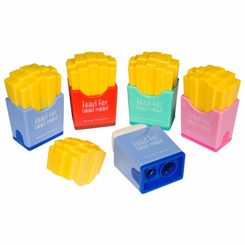 Точилка с ластиком BRUNO VISCONTI "JuniorGraphix Fast Food", контейнер, 2 отверстия, ассорти, 35-0060