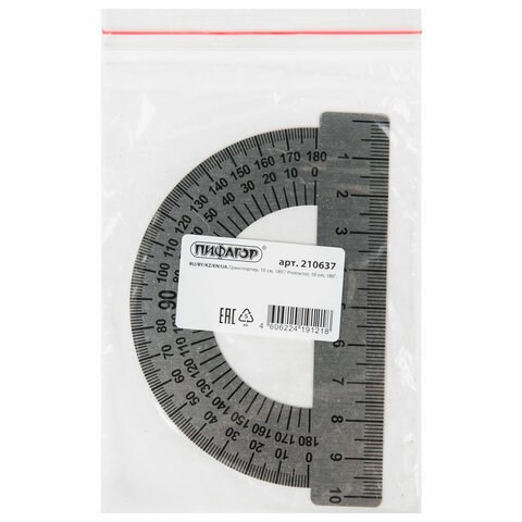 Транспортир 10 см, 180 градусов, металлический, ПИФАГОР, 210637