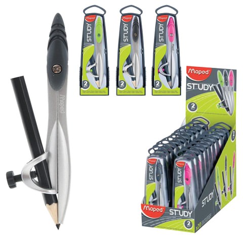 Циркуль MAPED "Study" идеально подходит школьникам и студентам для чертёжных работ.