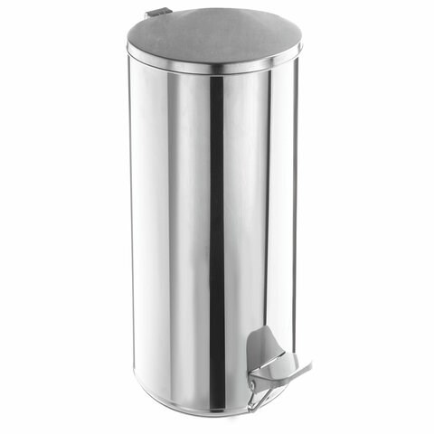 Урна для мусора с педалью 50 литров, УСИЛЕННОЕ, кольцо под мешок, хром, нержавеющая сталь, ТИТАН