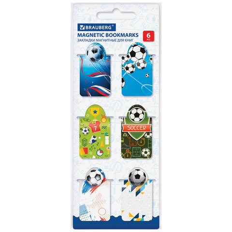 Закладки для книг МАГНИТНЫЕ c высечкой, "FOOTBALL", набор 6 шт., 35х25 мм, BRAUBERG, 113161