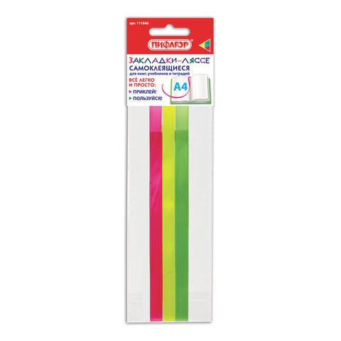 Закладки-ляссе ПИФАГОР "НЕОН" - одни из самых удобных закладок для учебников, школьных пособий, книг, тетрадей и т.д., сочетающие в себе как практическую, так и декоративную функции.